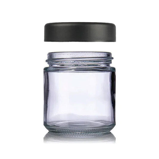 1 oz Clear Glass Child Resistant Jar With Smooth Black Lid - (200 Count)